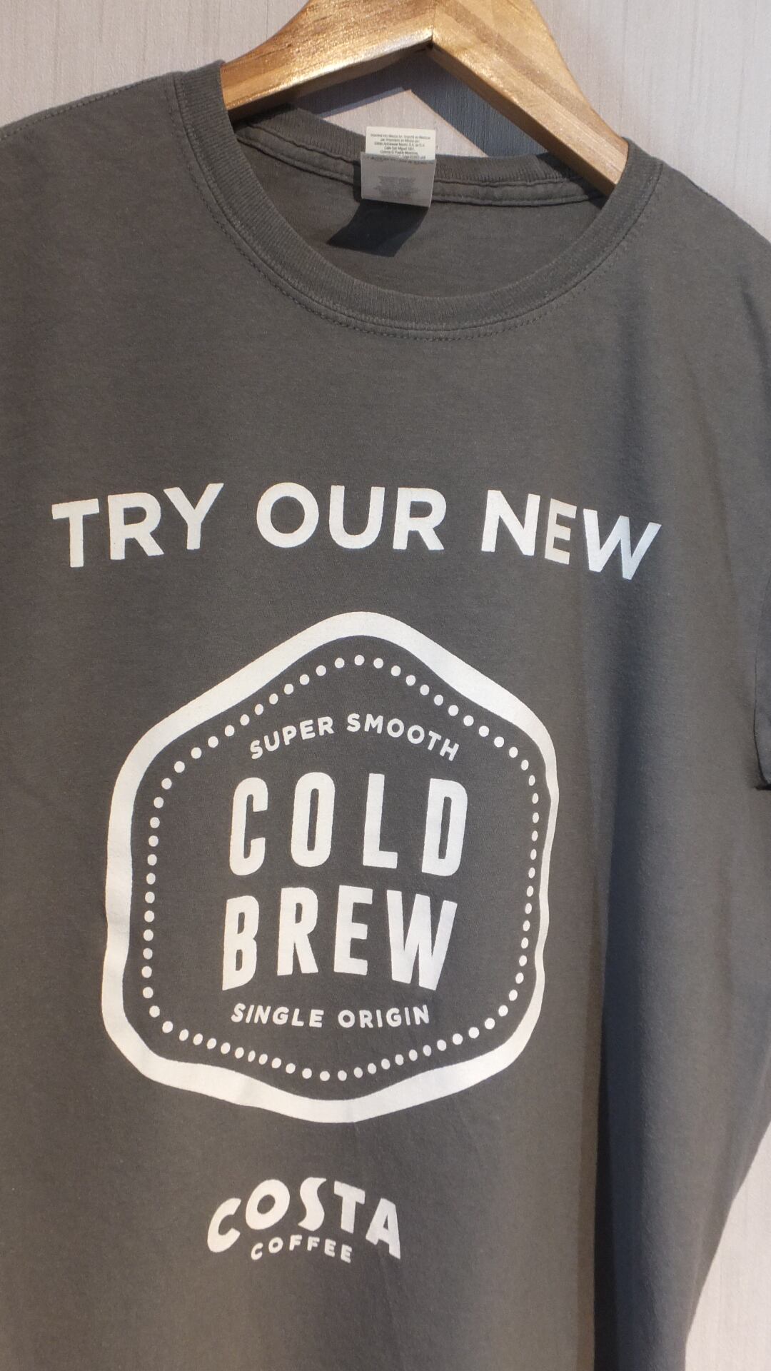 イギリス圏内を中心に、世界中で4,000弱の拠点を持つヨーロッパ最大のコーヒーチェーン、COSTA COFFEE コスタコーヒーのおそらく店舗内販促用Tシャツです。