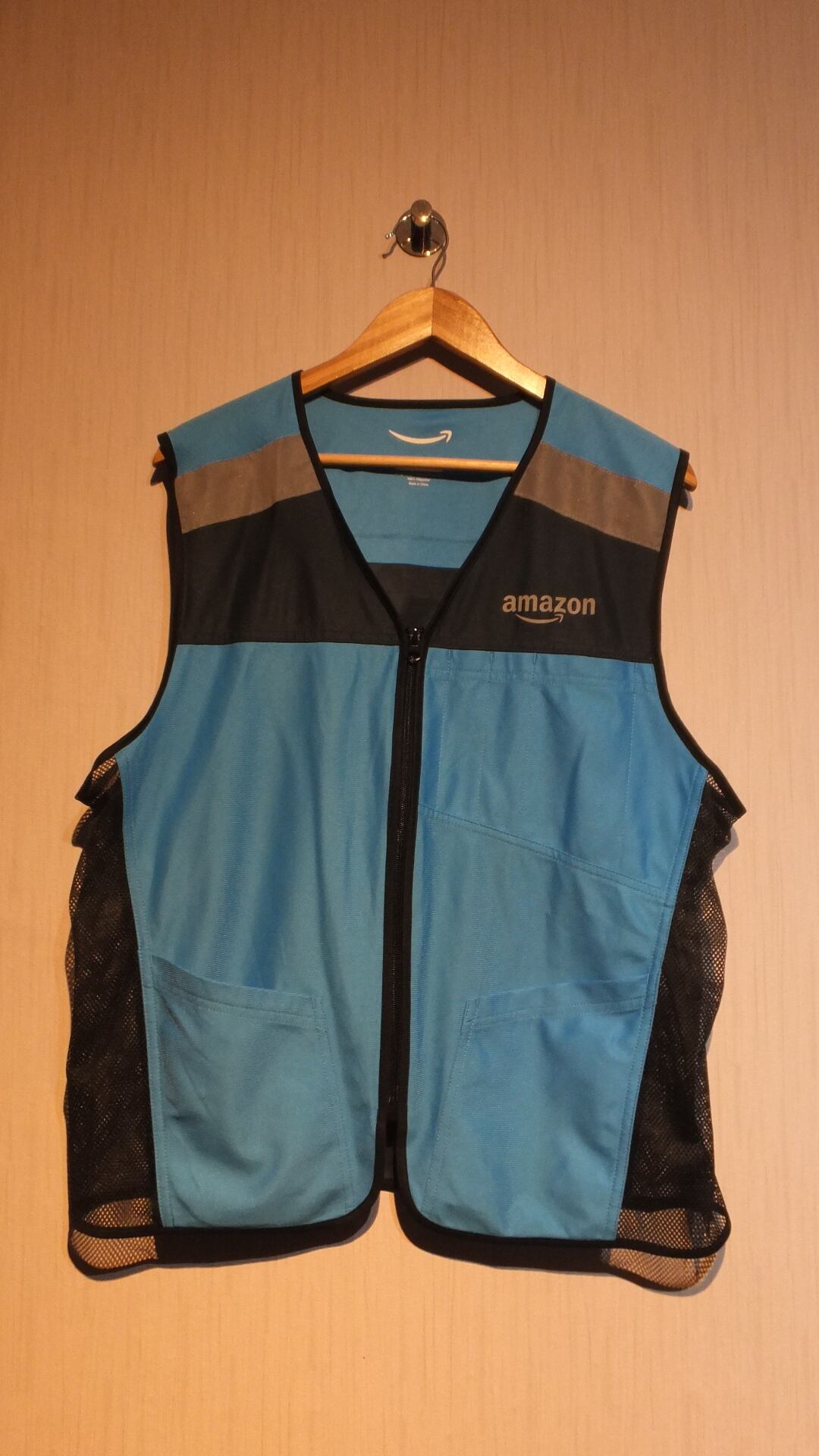 Amazon アマゾン 会社ロゴプリント入り作業ベスト ブルー/黒 着丈63㎝、身幅60㎝、肩幅43.5㎝ 企業物古着