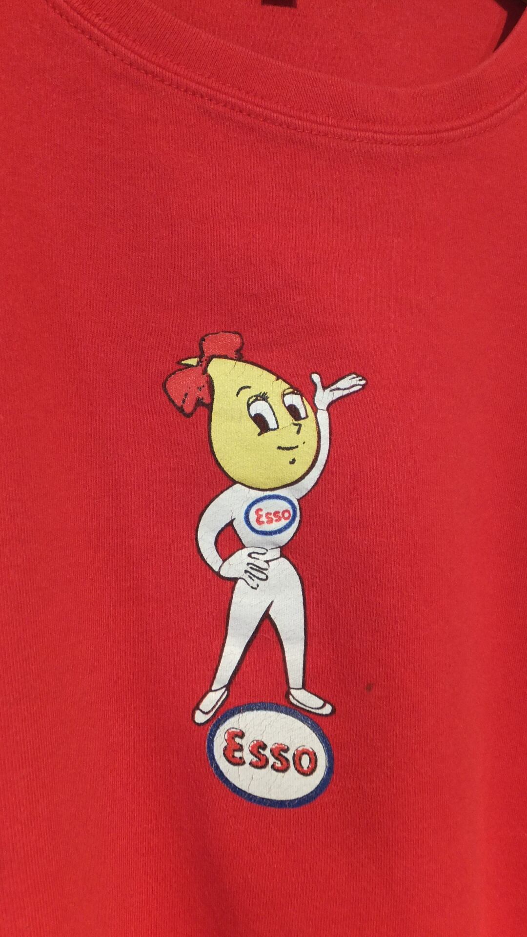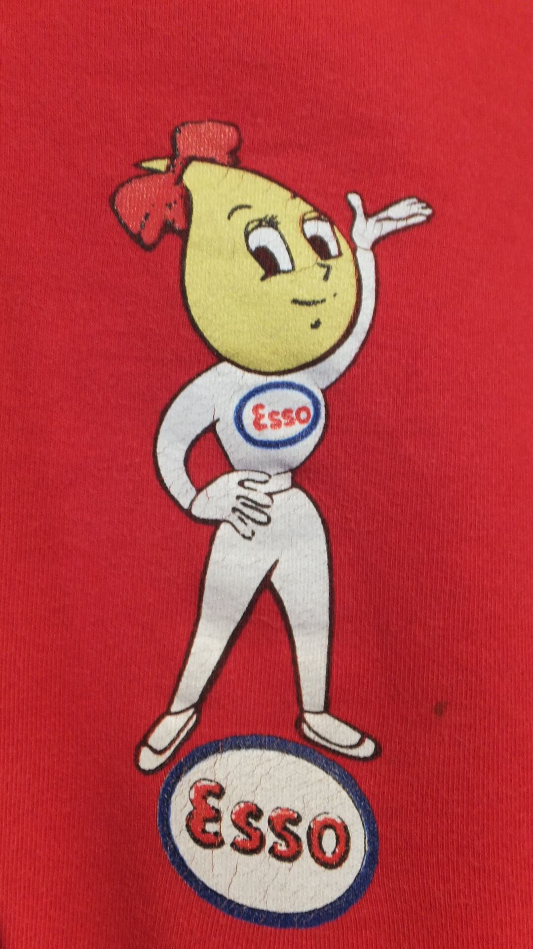 アメリカで20世紀初頭に創業、石油販売のEsso エッソ のマスコットキャラクター、エッソガールのイラストプリント入りTシャツです。