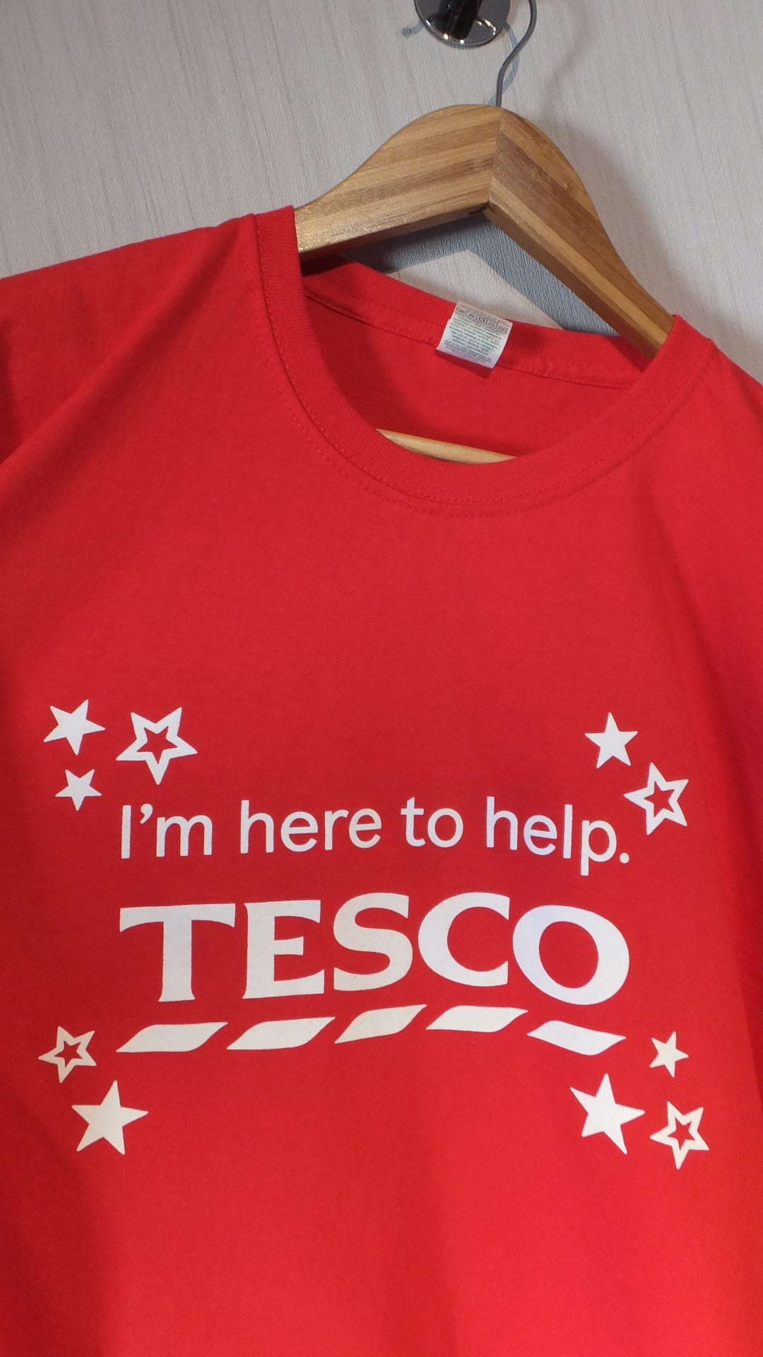 日本からは結構前に撤退していますが、イオンを優に上回る世界的小売りチェーン、英国発祥の世界的スーパーマーケットチェーン、テスコ TESCO のロゴプリント入り長袖Tシャツです。