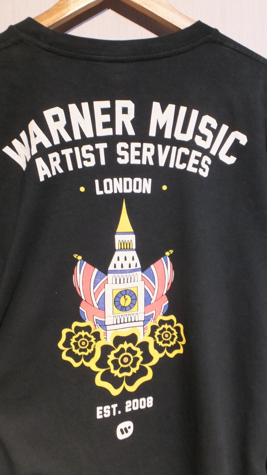 おそらく関係者用 ワーナーミュージックアーティストサービス ロンドン支部 WARNER MUSIC ARTIST SERVICE LONDON 両面組織名プリント入り 長袖Tシャツ ブラック 日本基準概ねXXL相当 サイズ表示XL ※写真1枚目はバックプリントです