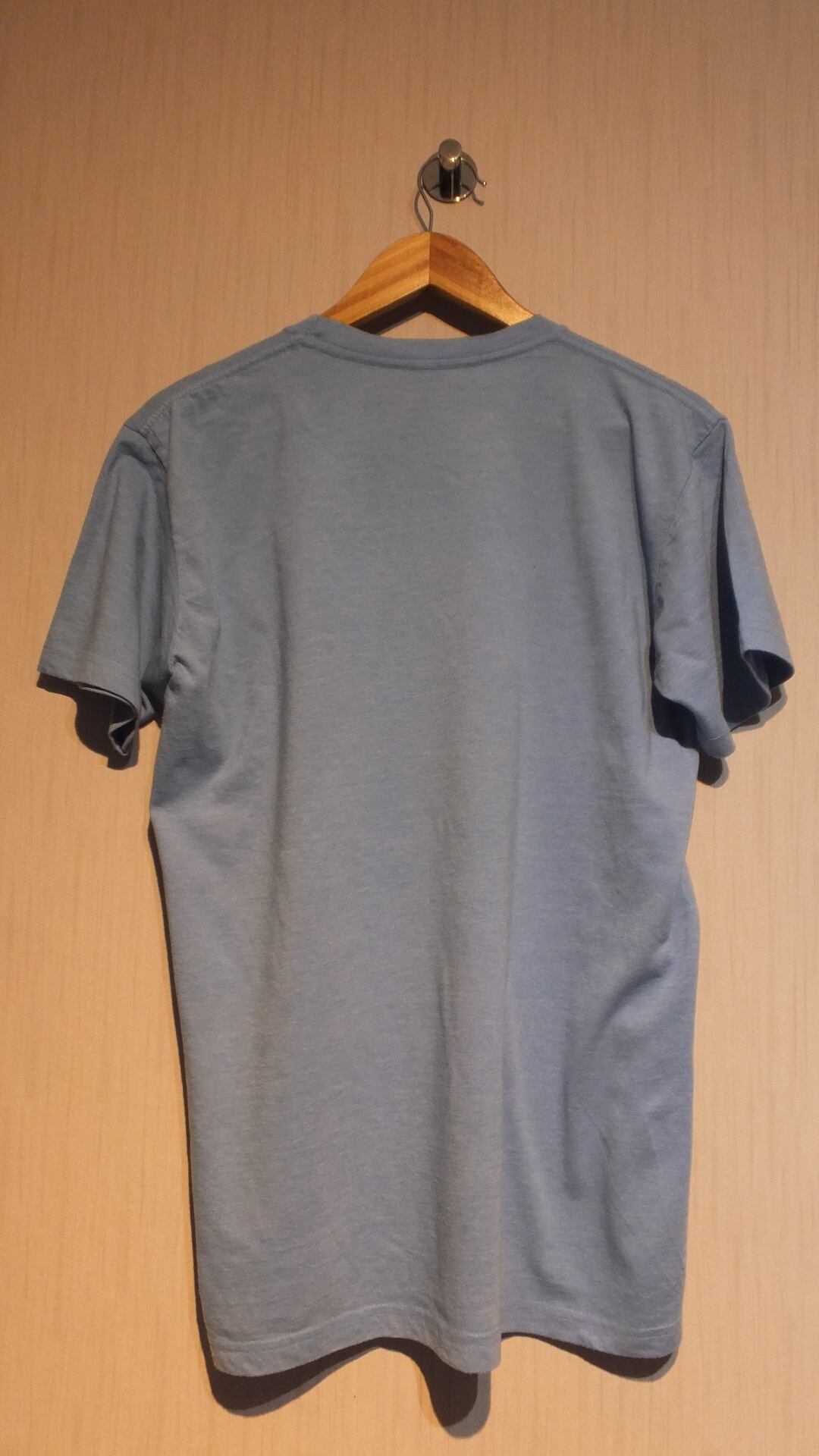寸法: 着丈: 69 cm(ユニクロのTシャツMサイズとの比較値 - 1 cm)、身幅: 53 cm(同比較値 + 0.5 cm)、肩幅: 46 cm(同比較値 + 2 cm)、袖丈: 19 cm(同比較値 - 3 cm)