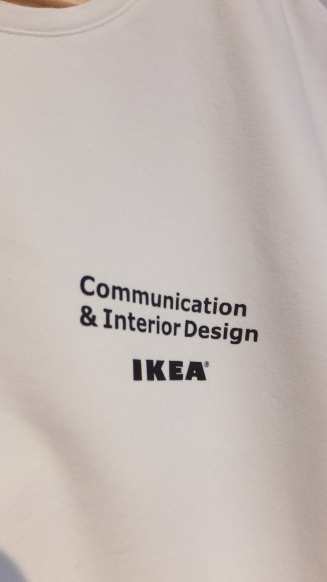 IKEA の企業ロゴと、Communication & Interior Design というプリントが両面に入っております。おそらく従業員の方が使用する作業着の類ではないでしょうか。