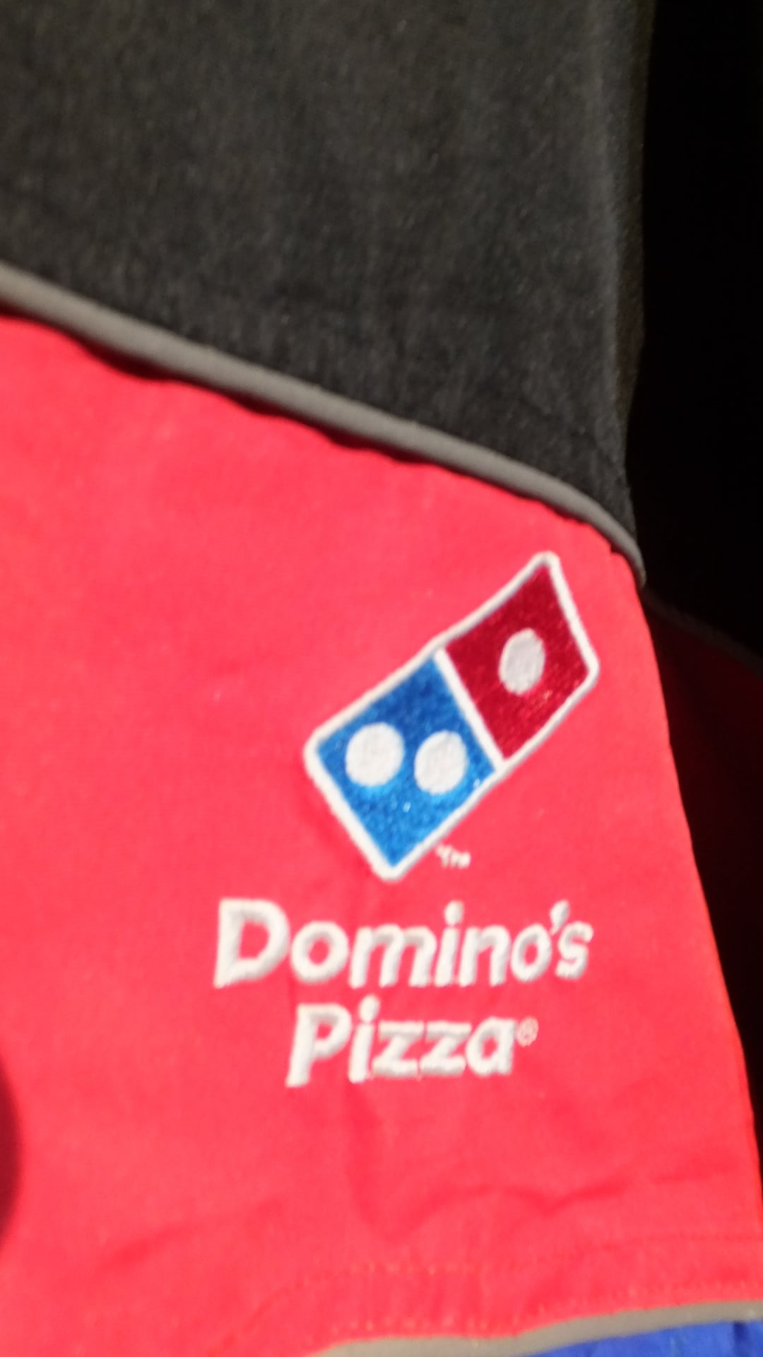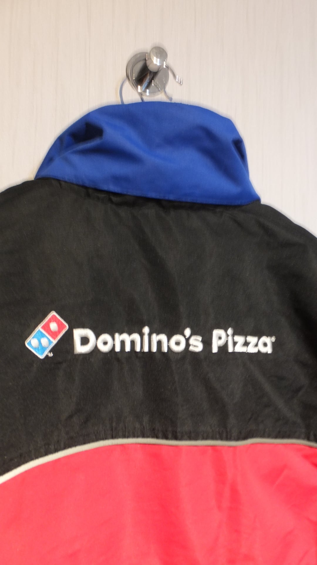 全世界でおよそ15,000店舗を構え、日々大量にピッツァを販売するピザ界のゲームチェンジャー、ドミノピザ Domino's Pizza の両面刺繍社名ロゴ入りジャケット。
