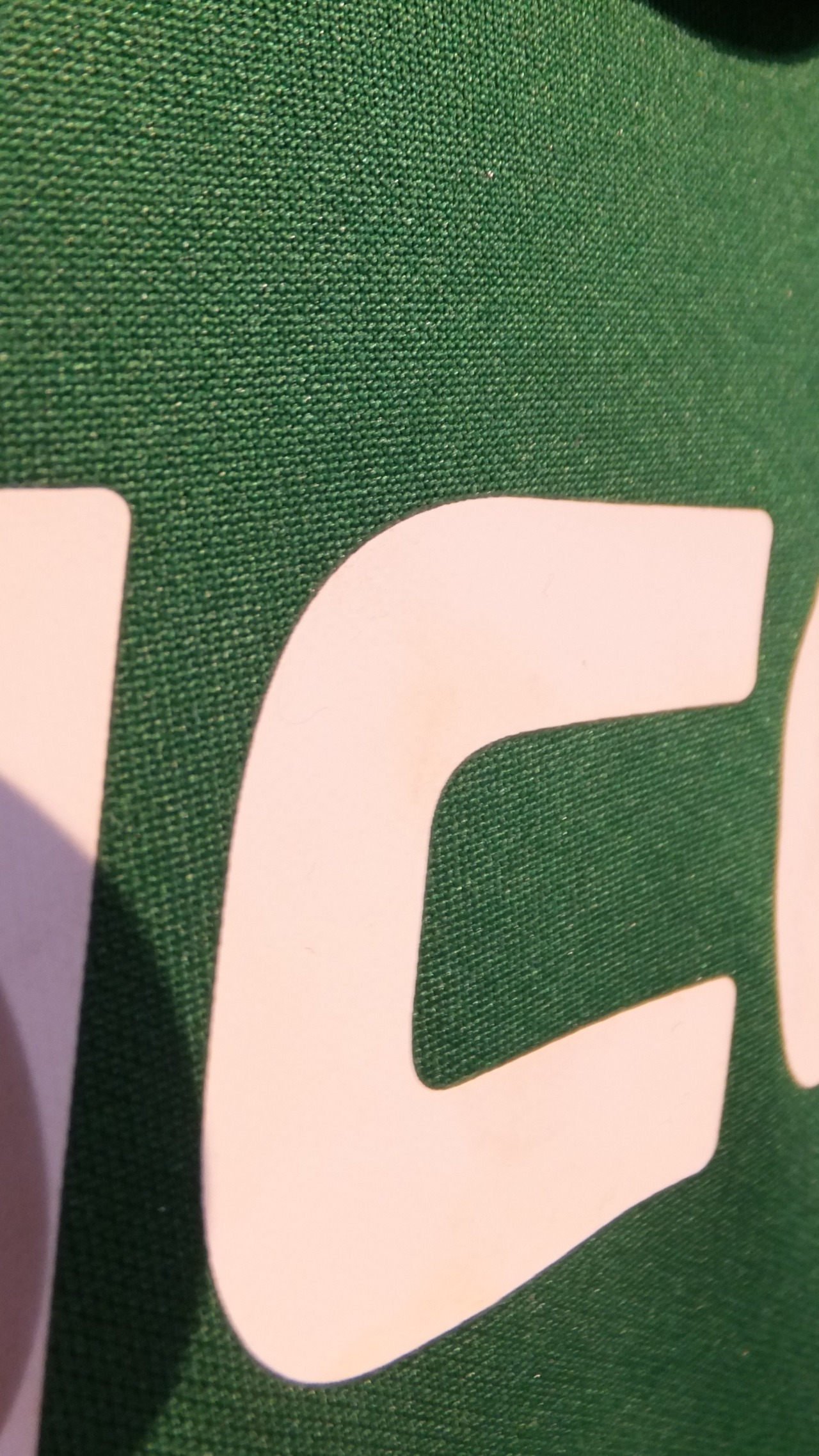 C の文字プリント上部あたりにごく薄いオレンジ色の色移りが見られます。