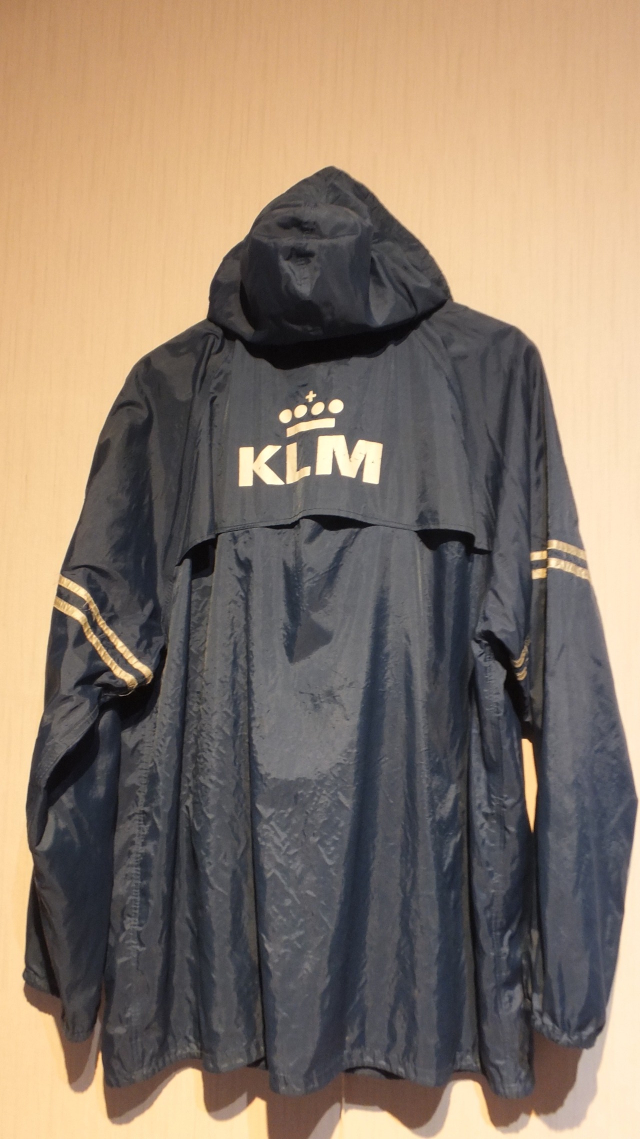 KLMオランダ航空 ロゴプリント入りジャケット(おそらく、レインウェアとして製造)推定’70~’80年代頃 日本基準サイズ概ねXL(男女兼用サイズ)相当 表示サイズXL 飛行機関係古着 ※写真1枚目はバックプリントです | dankeman